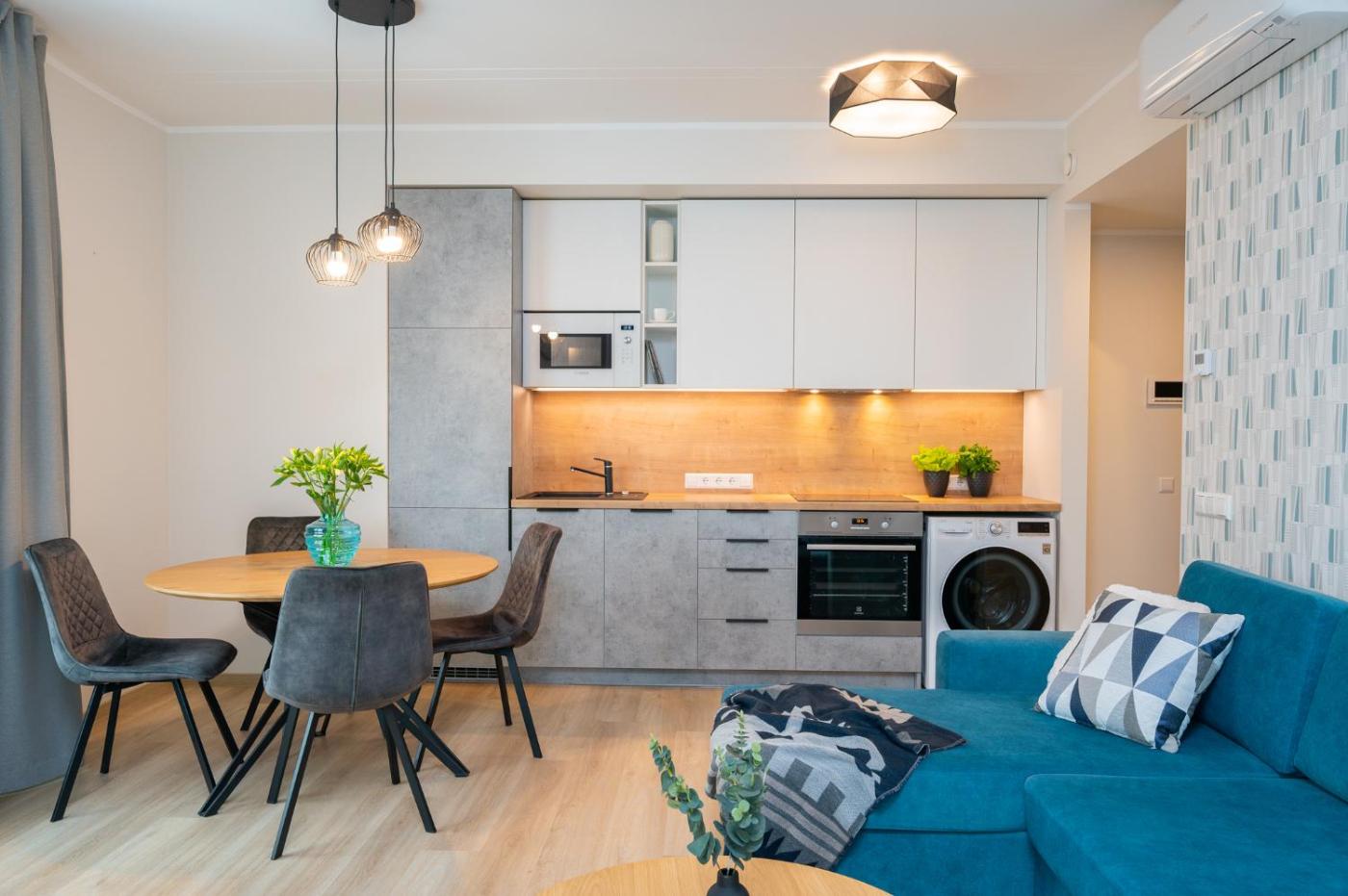 One-Bedroom Apartment. This apartment consists of 1 living room, 1 separate bedroom and 1 bathroom with a shower and free toiletries. Guests can make meals in the kitchenette that is equipped with a stovetop, a refrigerator, a dishwasher and kitchenware. The air-conditioned apartment provides a flat-screen TV with cable channels, a washing machine, a tea and coffee maker, a dining area as well as city views. The unit offers 2 beds.
